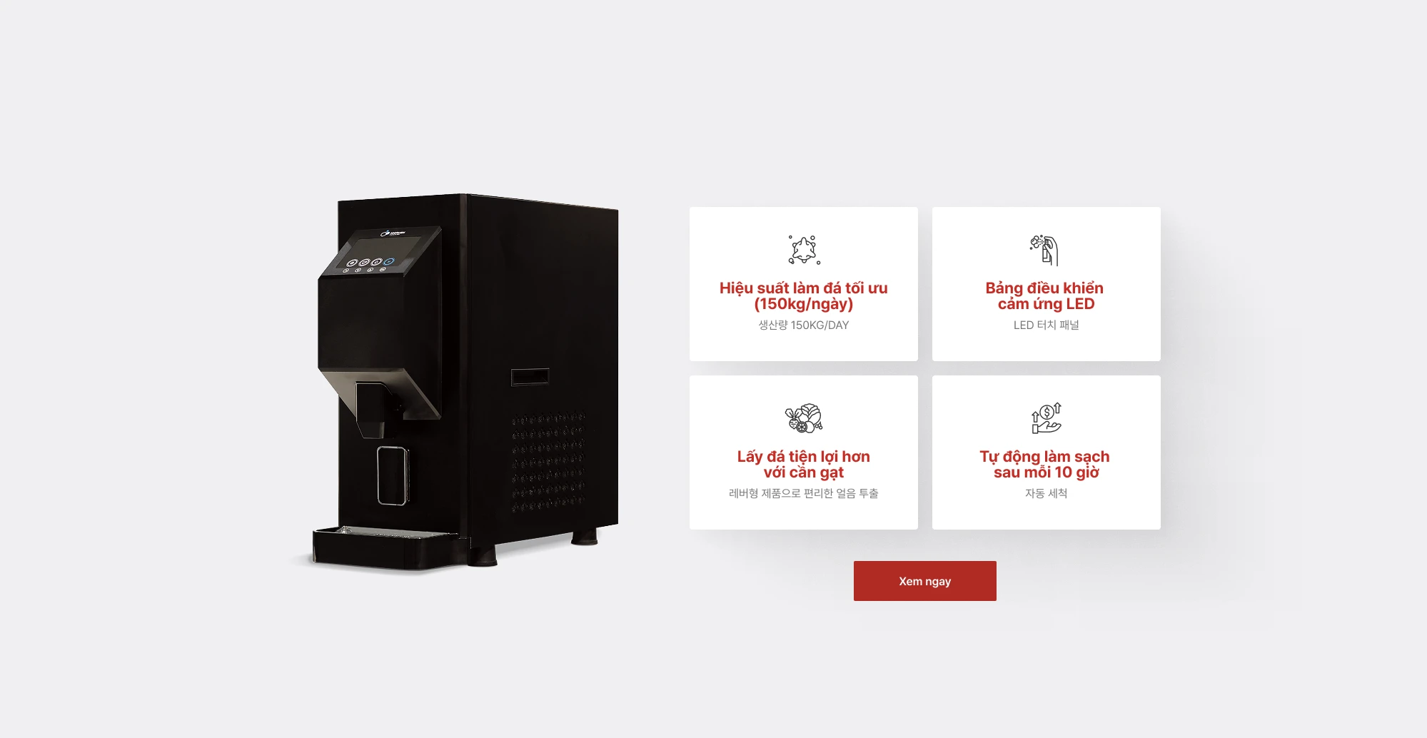 Máy làm đá IR-1204 sử dụng công nghệ làm lạnh tiên tiến giúp sản xuất đá viên đều, sạch và nhanh