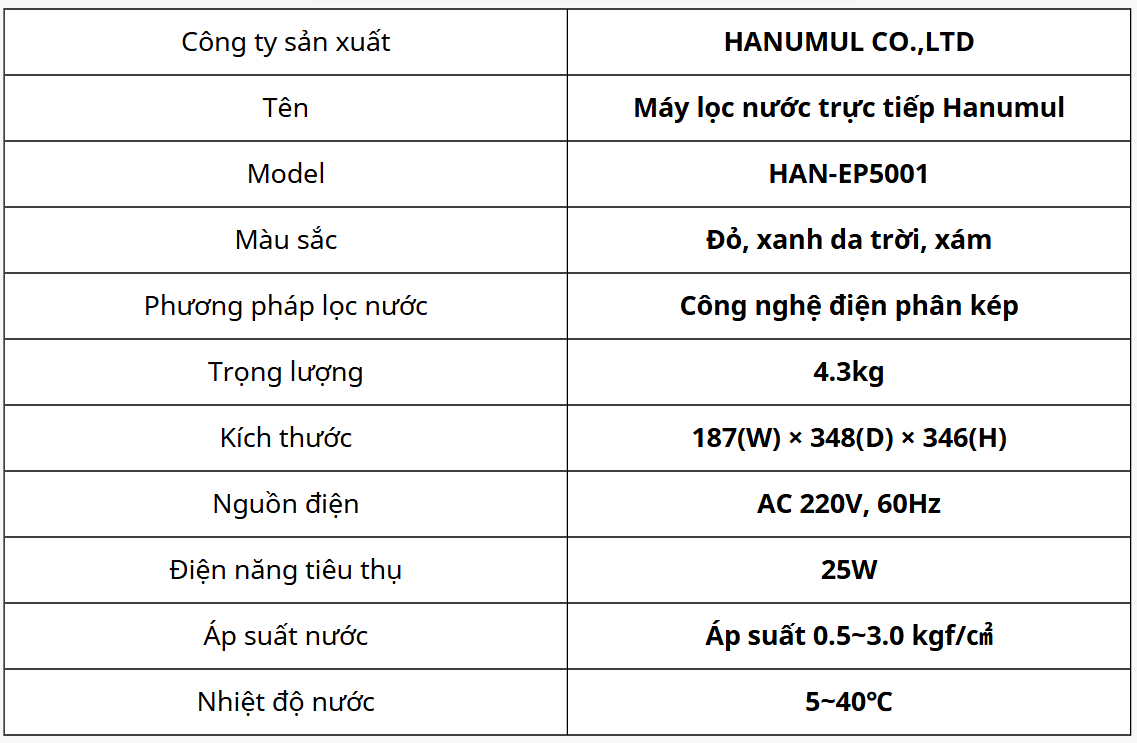 Máy lọc nước trực tiếp HANUMUL HAN-EP5001